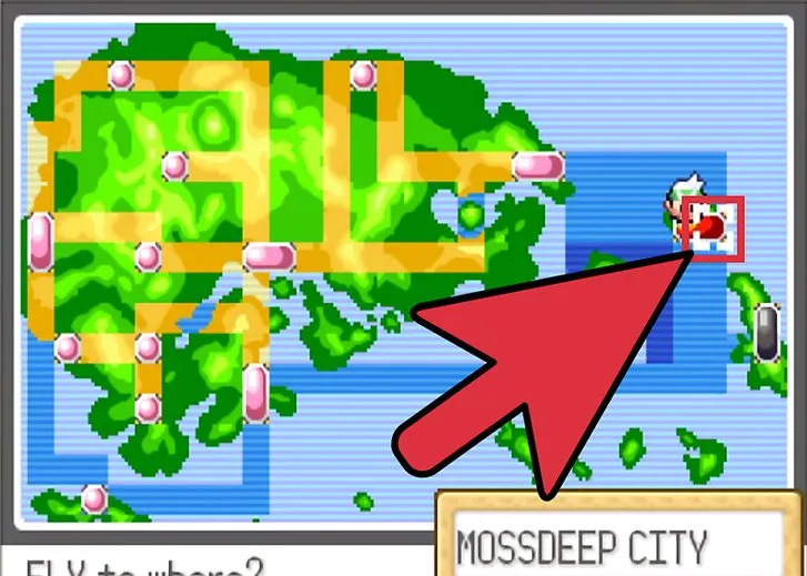 Après avoir terminé le jeu, rendez-vous à Nénucrique (Mossdeep City), une ville située sur une île à l’est de la région de Hoenn. Vous pouvez vous y rendre directement avec un Pokémon connaissant Vol.