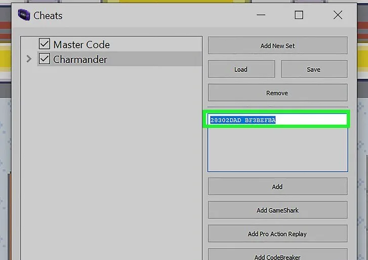 Begin by launching your GBA emulator and loading your Pokémon Emerald ROM. Find the “Cheats” or “Cheat List” option in the menu — usually located in the toolbar or settings area. This is where you’ll enter both the master code and the Charmander-specific code.